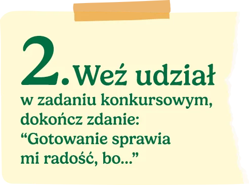 - Zadanie konkursowe – dokończ zdanie: „Gotowanie sprawia mi radość, bo…”