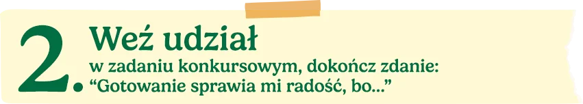 - Zadanie konkursowe – dokończ zdanie: „Gotowanie sprawia mi radość, bo…”