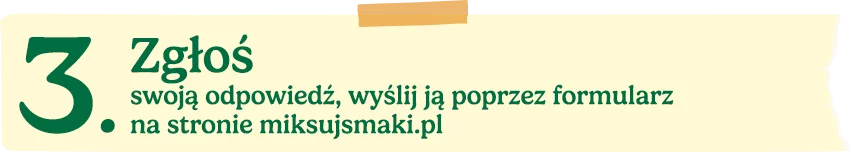 - Udział w Konkursie należy zgłosić przy pomocy formularza zgłoszeniowego w drodze rejestracji na stronie Konkursu www.miksujsmaki.pl W formularzu zgłoszeniowym należy wypełnić następujące obowiązkowe informacje i oświadczania oraz wykonać zadanie konkursowe: